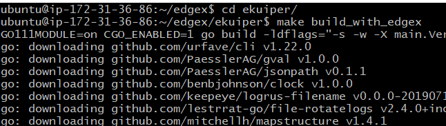 Enter the ekuiper folder and issue the make build_with_edgex command as shown below.